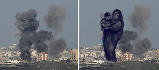 خلق آثار هنری با دود بمب های اسرائیلی...